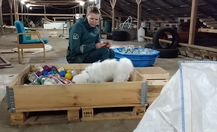 Instruktøren har indrettet et miljø, der giver hunden tryghed til aktivt at deltage i lyd og lys træning og dermed udvikle tolerancetærsklen.